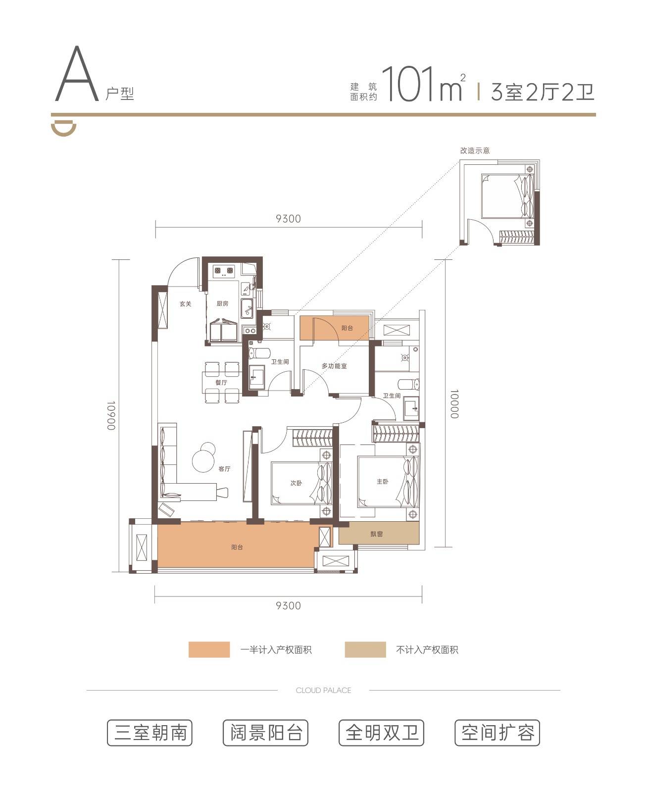 建筑面积: 101㎡(3房2厅2卫)